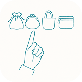 まずは、つくりたいアイテムの形を選びます。巾着・ポーチ・がま口・バッグなど、豊富な型をご用意しています。
