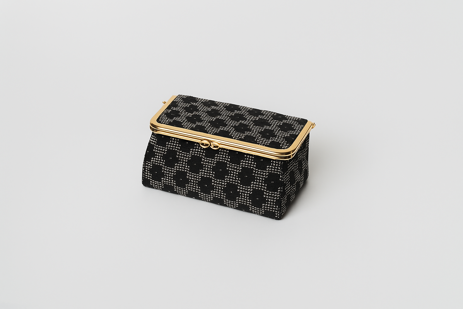 ゴールドのガマ口を開けると内側には鏡がついています。
